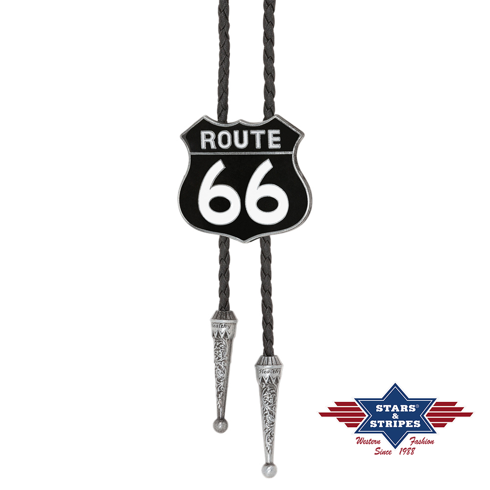 Bolotie gemaakt van 100% Zinc alloy, imitatie leren veter, Route 66 en decoratieve uiteinden.