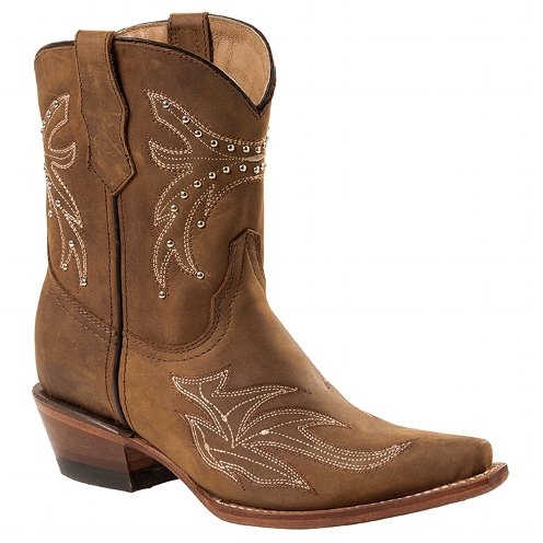 Een modieuze korte schacht en een scherp taps toelopend silhouet met een klassieke schuine westernhak.