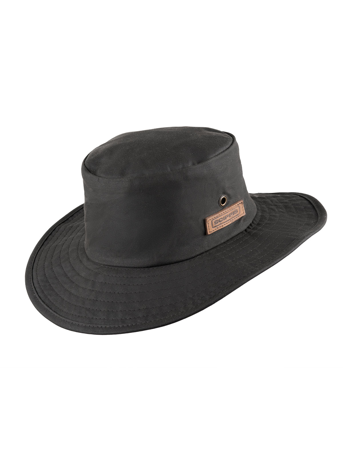 De prominente Oilskin hoed Jack van SCIPPIS is het beste bewijs dat Oilskin ook een perfect hoedenmateriaal is. De eenvoudige en praktische metgezel is gemakkelijk op te bergen. Dankzij het hoogwaardige materiaal van 100% katoen (canvas) doet het altijd betrouwbaar zijn werk in de vrije natuur, zelfs onder zware omstandigheden. Optisch past deze effen, typisch Australische outdoorhoed met het originele merkembleem gewoon bij elke outfit. Outback-fans en avonturiers zullen dol zijn op de Oilskin Jack !